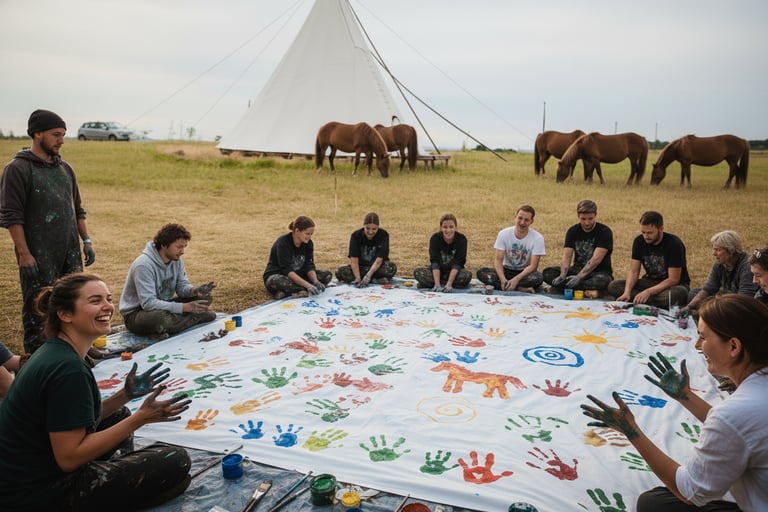 Náš tábor nabízí pestrý program plný nejen koňských aktivit 🐴. Můžete se těšit na různé hry a výzvy, např. arteterapie s výstavou 🎨, muzikoterapie 🎶, focení 📸, soutěž MasterChef 🍳, poznávání vín 🍷, únikovka na farmě 🔍 a farmářská olympiáda 🥇. Kromě zábavy se zaměříme také na osobní rozvoj, sebepoznání. Chybět nebude ani prostor pro relaxaci, koupání 🏊♀️ a odpočinku v hamace nebo v koupacím sudu 🌿.